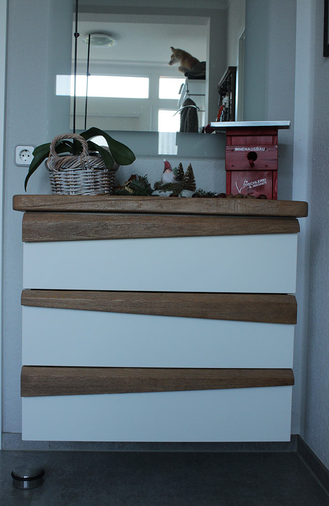In der Tischlerei B. Wagner kombinieren wir das recycelte Altholz mit modernen Materialien wie Edelstahl, Aluminium und Glas. Die zeitlosen Möbel, die aus dieser Kombination entstehen, sind in vielen Lebens- und Arbeitsbereichen sehr beliebt.